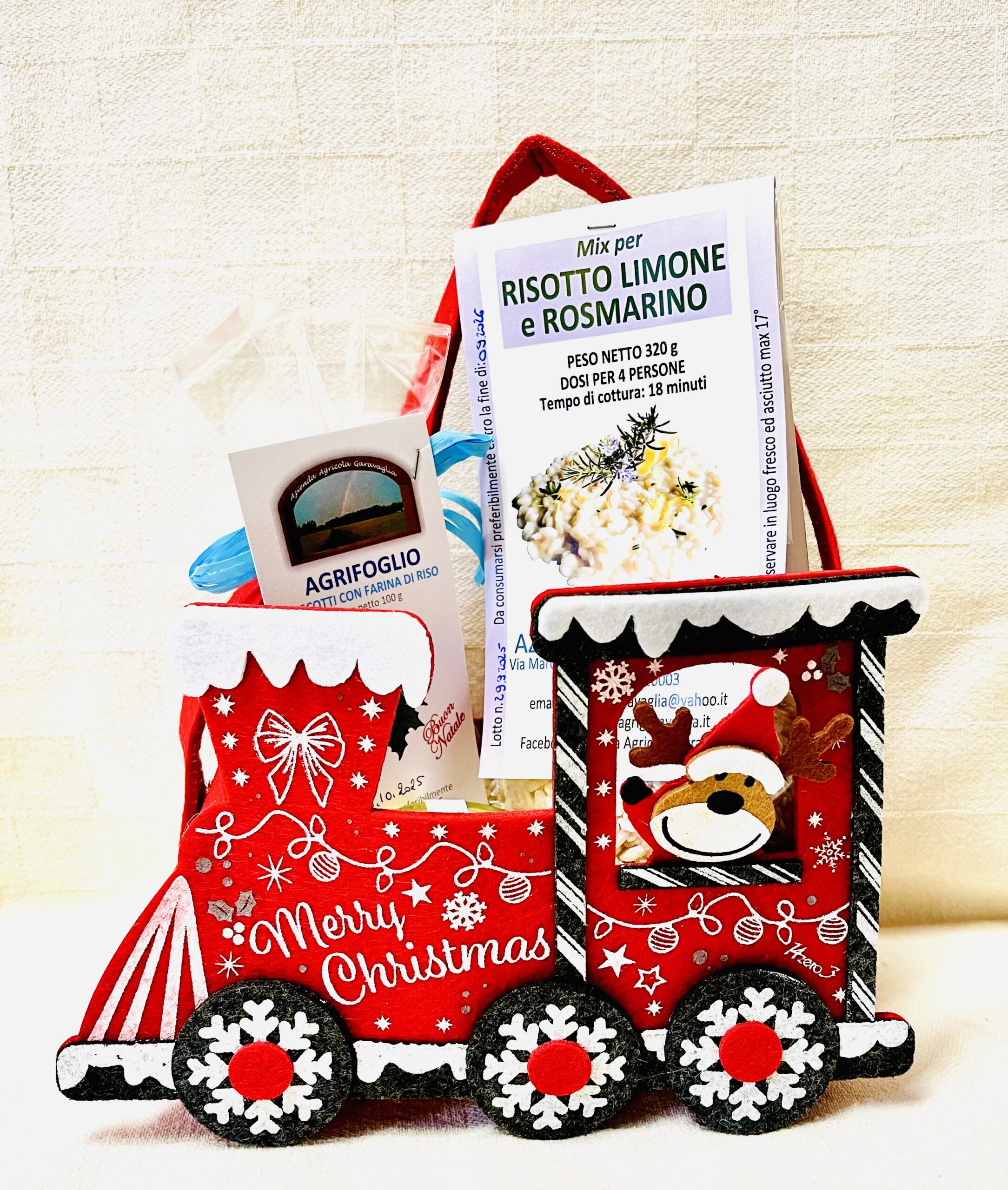 Es. in fotografia: trenino + 1 risotto grande + 1 biscotto + 1 confettura 40g: 11,80€