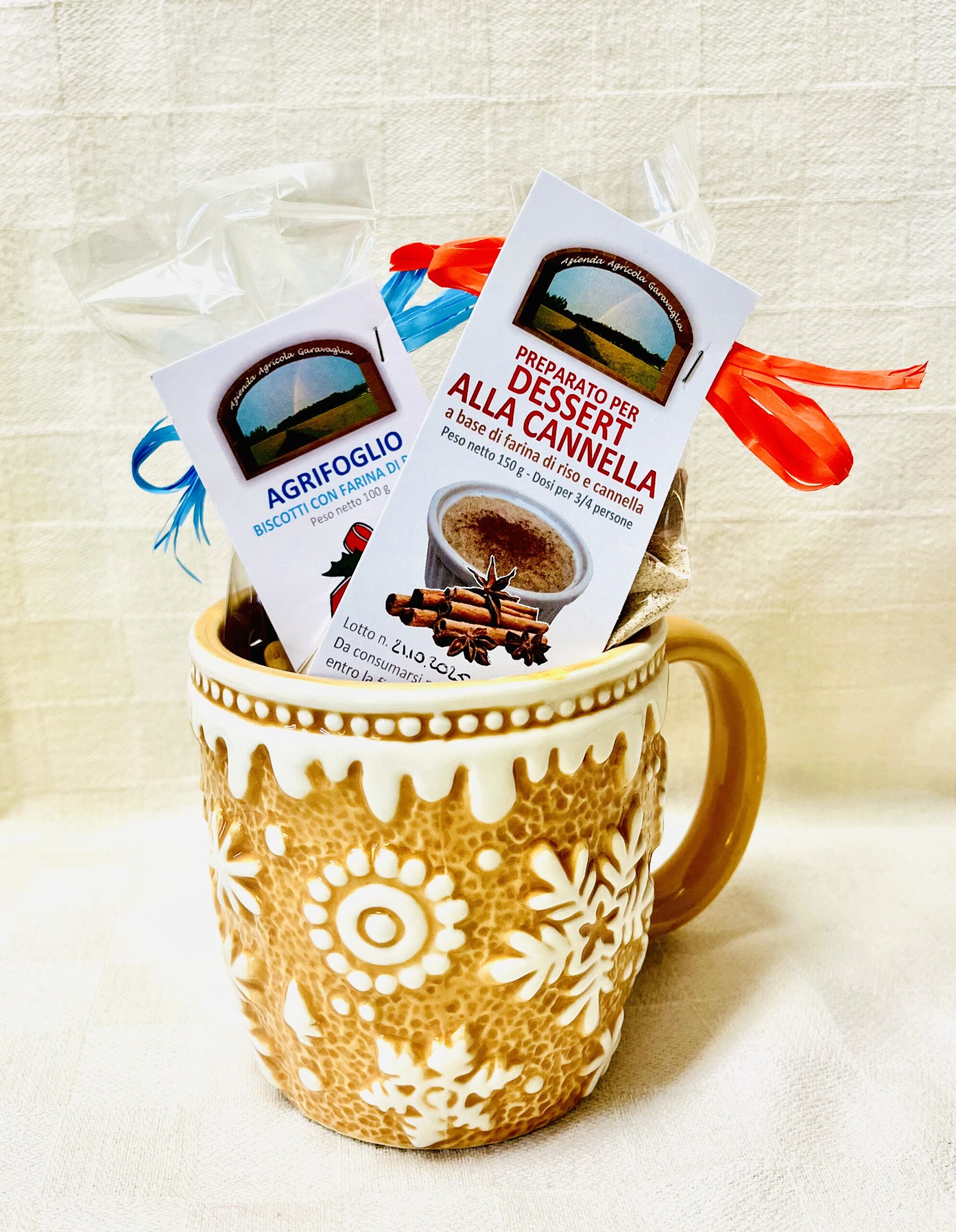 Tazza in ceramica natalizia disponibile in due colori (marrone chiaro e color cioccolato)